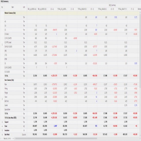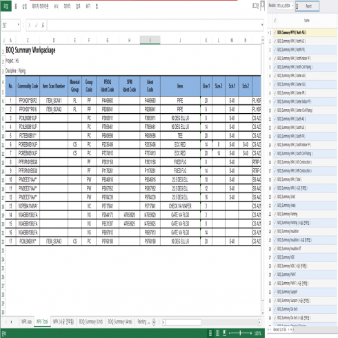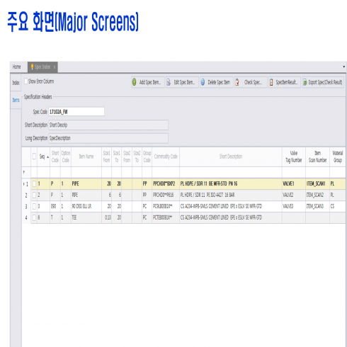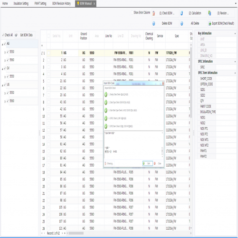 배관자재 Spec.을 표준화하고 Spec Issue를 관리하며, BM Batch Run을 통하여 Spec 변화에 따른 BM 데이터가 자동 검증되고, BM Balance Check로 데이터의 흐름을 관리한다.