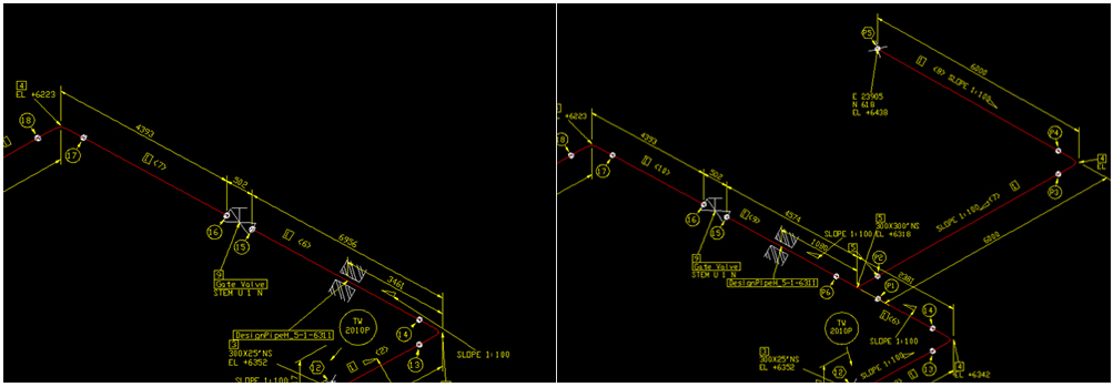 - Weld and part number and determined whether to keep or change by comparing coordinates, UCID and pipe geometry.